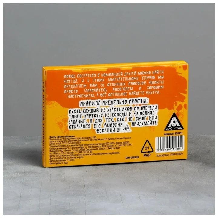 Купить игра для компании "фанты буханты" 20 карт от 100 руб. с доставкой до пункта выдачи в Ермолино. Интернет магазин ДекаМаркет. Оплата при получении.